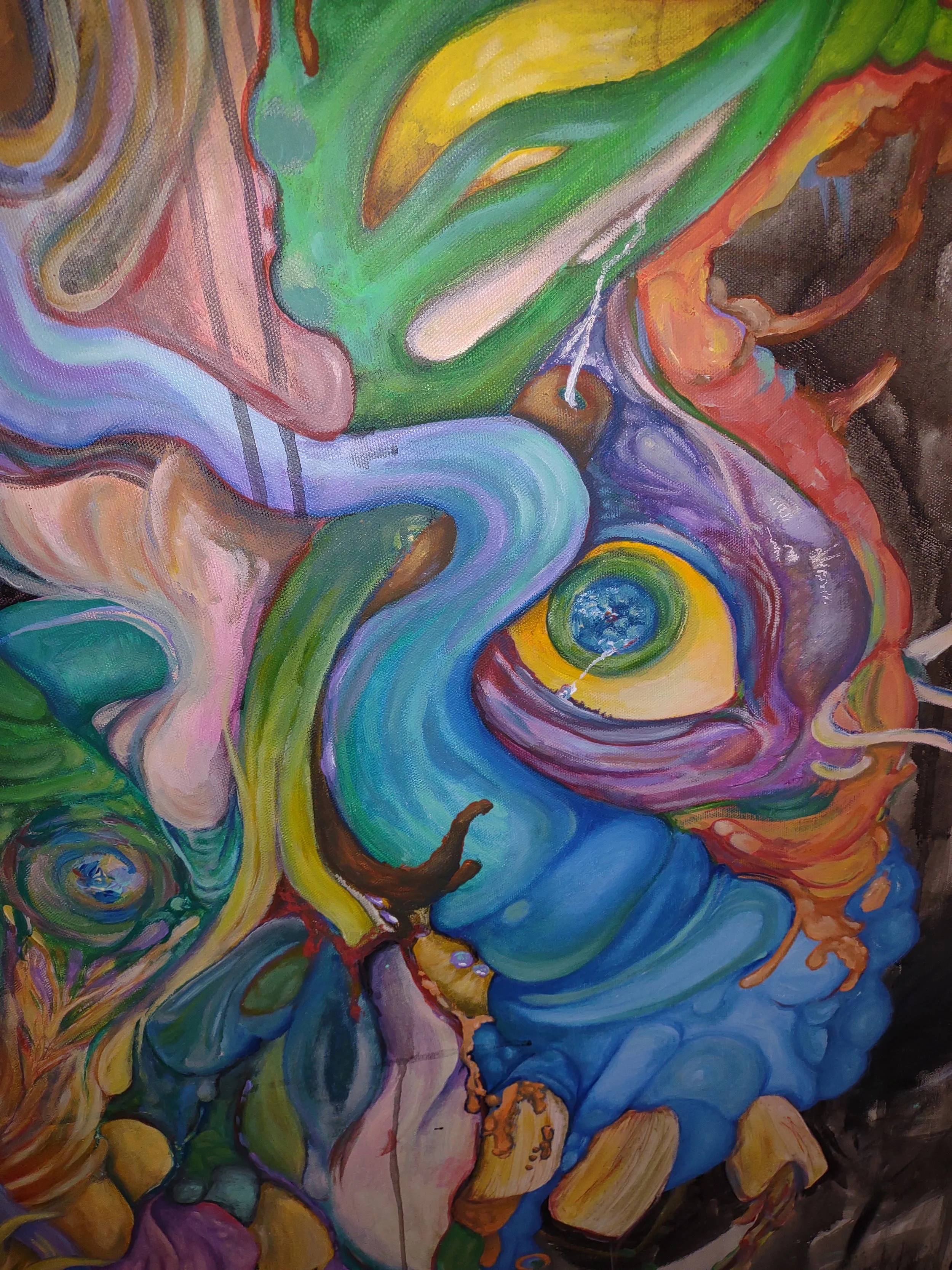 ALMOST ALL PAINTINGS ARE CREATED WITH ACRYLIC PAINT ON CANVAS OF VARIOUS SIZES. STYLISTICLY RANGING FROM; ABSTRACT, SURREALISM, LOWBROW, OUTSIDER, IMPRESSIONISM, GRAFFITI, FINE ART, PSYCHEDELIC, CONTEMPORARY PORTRAITURE, CYBERSIGILISM,OVERALL A SUBLIMATION TOWARD POSITIVITY.